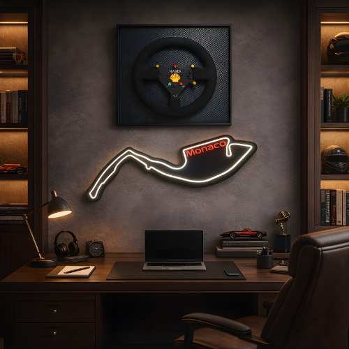 Reviva a história e transforme seu espaço com a presença marcante da Luminária em LED da pista de Mônaco e o Quadro Volante McLaren MP4/8 de 1993, modelo e ano que marcaram a sexta e última vitória do nosso herói nacional no circuito monegasco, o consagrando como o verdadeiro e eterno Rei de Mônaco.