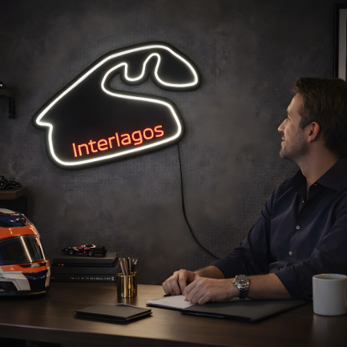 Traga a emoção da velocidade e o espírito de Interlagos para sua casa com a incrível  Luminária de Parede em LED - Pista Interlagos - Formula 1 inspirada em uma das pistas mais icônicas do automobilismo.